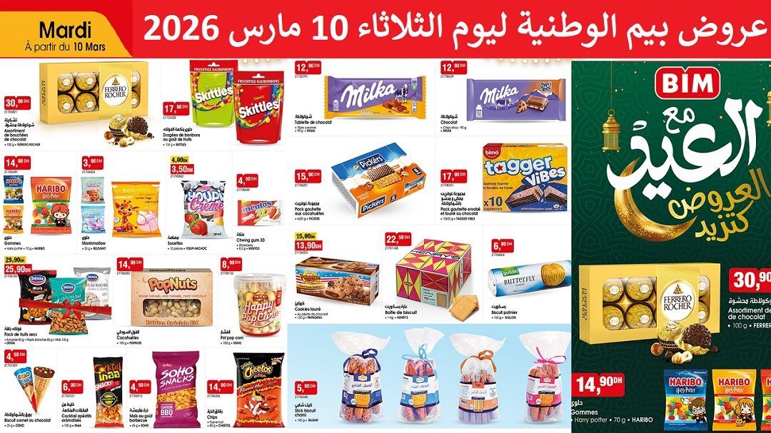 Découvrez les nouvelles promo et solde bim 10 mars 2026 offres chocolat. disponible dans tous vos magasins bim au Maroc.