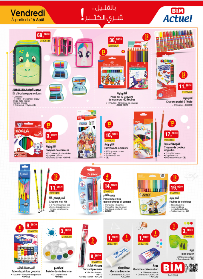 Découvrez une sélection de produits chez les magasins de Bim au Maroc, Bim agadir / Bim Casablanca/ Bim Rabat/ Bim Marrakech/ Bim Fes / Bim Tanger À partir du vendredi 16 août 2024