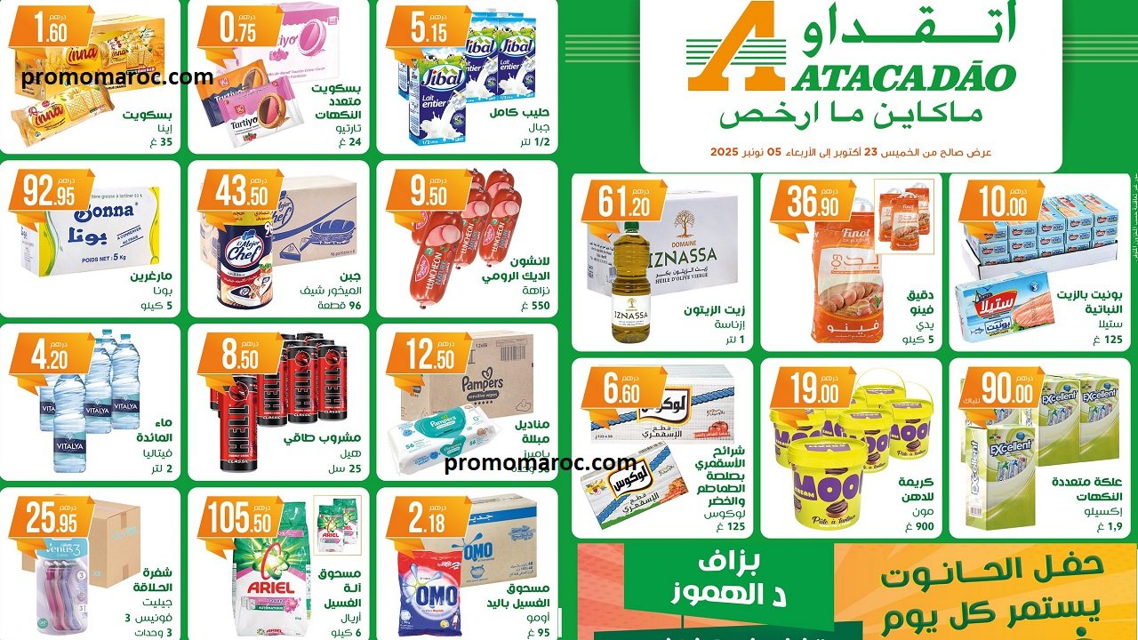 Découvrez les nouvelles promotion et soldes Atacadao du 23 octobre au 05 novembre 2025. disponible dans tous vos magasins Atacadao au Maroc.