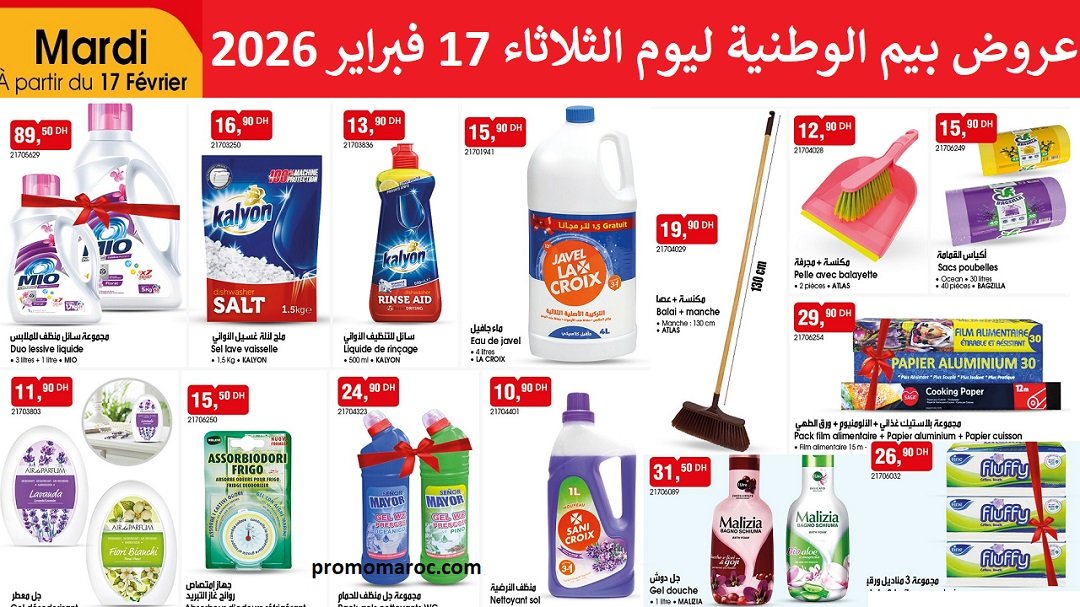 Découvrez les nouvelles promotion et solde du catalogue bim 17 fevrier 2026 produit de nettoyage. disponible dans tous vos magasins bim au Maroc.