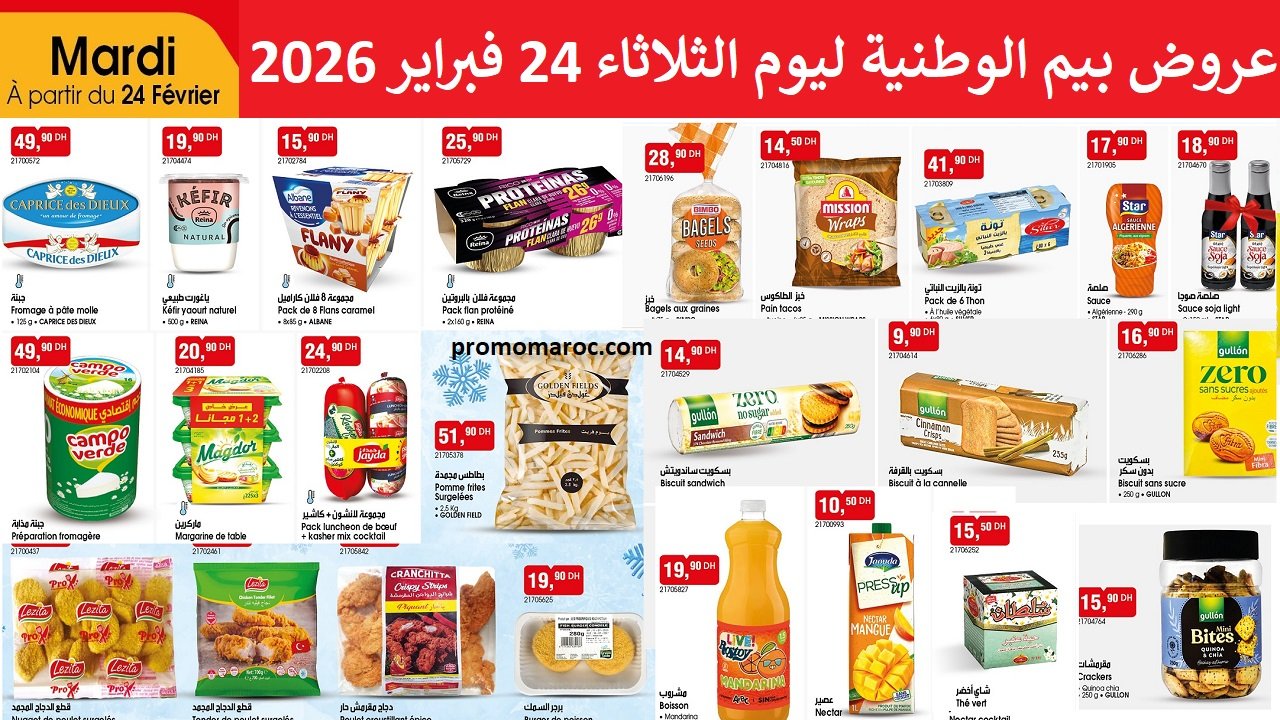 Découvrez les nouvelles promotion et solde du catalogue bim 24 fevrier 2026 produit alimentaire. disponible dans tous vos magasins bim au Maroc.
