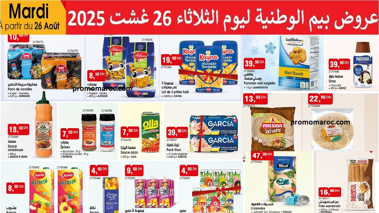 AccueilsupermarchéBimCatalogue bim 26 Août 202519 août 2025FacebookTwitterPinterestWhatsApp Catalogue bim 26 Août 2025هميزات بيم الوطنية ليوم الثلاثاء 26 غشت 2025Découvrez les nouvelles promotion et solde du catalogue bim mardi 26 Août 2025 produit cosmétique. disponible dans tous vos magasins bim au Maroc.Le catalogue bim 26 Aout met a votre disposition:TagsBIM MarocCatalogue BimPartagerFacebookTwitterPinterestWhatsApp Articles Liés AswakassalamCatalogue Aswak Assalam du 13 fevrier au 8 mars 2026 BimPromotion Bim vendredi 13 fevrier 2026 kazyonPromotion Kazyon maroc du 12 au 18 fevrier 2026Articles récents AswakassalamCatalogue Aswak Assalam du 13 fevrier au 8 mars 2026 BimPromotion Bim vendredi 13 fevrier 2026 kazyonPromotion Kazyon maroc du 12 au 18 fevrier 2026 soldePromo Bim maroc jusqu’au 13 fevrier 2026 BimOffres Bim jusqu’au 12 fevrier 2026Voir plus