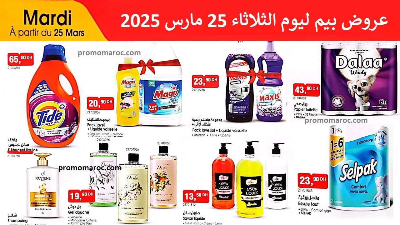 Découvrez une sélection de produits chez les magasins de BIM Maroc, Bim agadir / Bim Casablanca/ Bim Rabat/ Bim Marrakech/ Bim Fes / Bim Tanger. À partir du mardi 25 mars 2025.