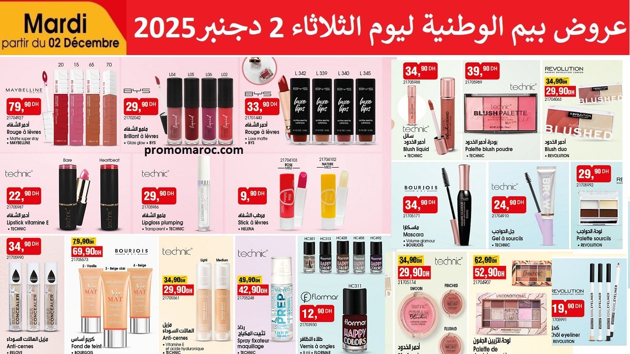 Découvrez les nouvelles promo et solde du catalogue bim market 2 decembre 2025 offres maquillage. disponible dans tous vos magasins bim au Maroc.