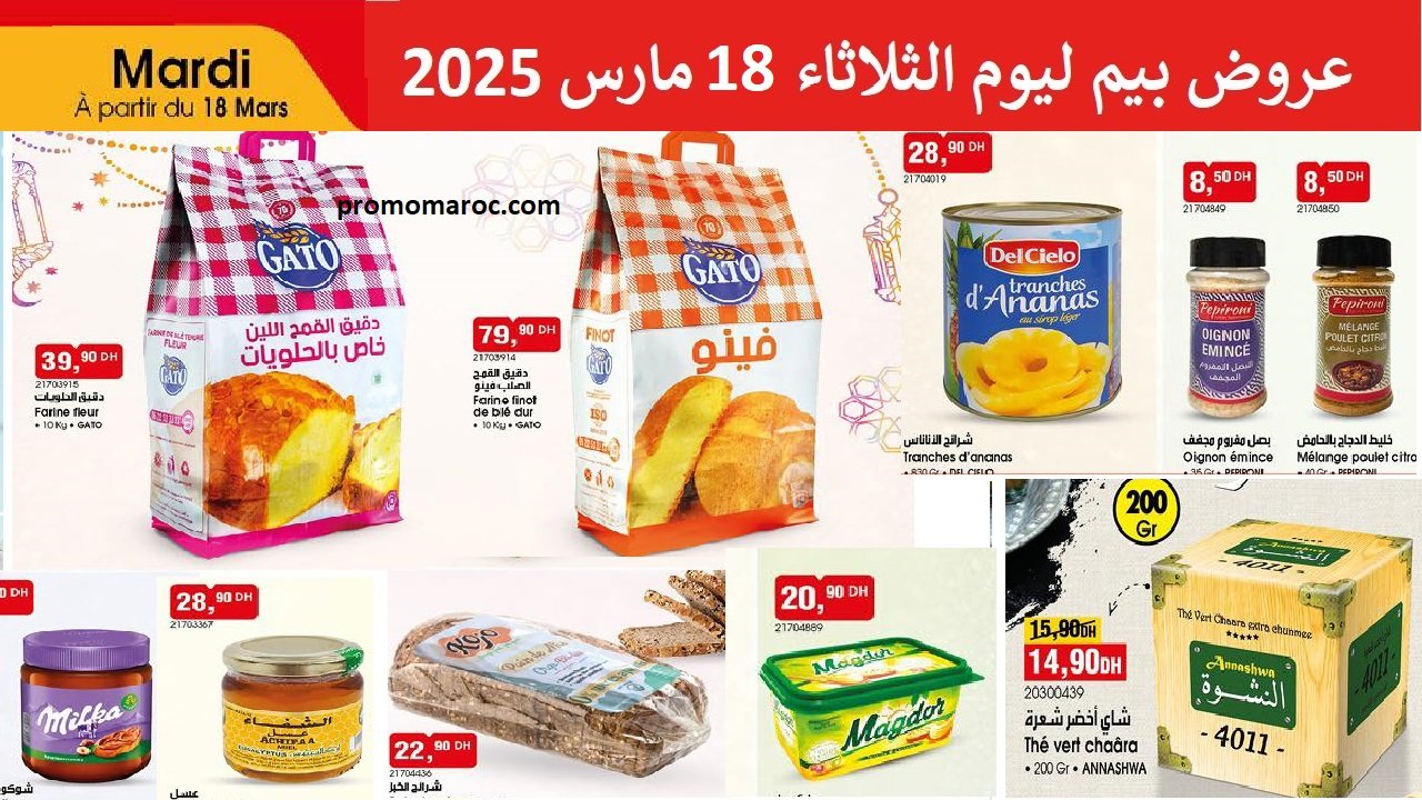 Découvrez les offres de BIM Maroc à partir du mardi 18 mars 2025. Des réductions sur l’alimentation, la farine et tout ce dont vous avez besoin pour vos besoins quotidiens. Disponible dans tous les magasins BIM au Maroc