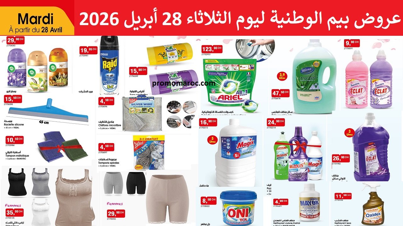 Découvrez les nouvelles promo et solde du catalogue bim maroc 28 avril 2026. disponible dans tous vos magasins bim au Maroc.
