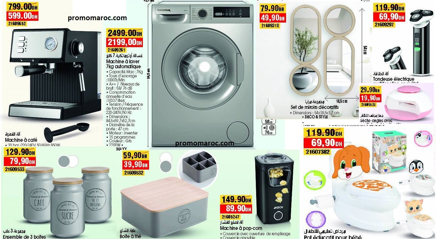 - Machine à laver 7kg homemaxx prix bim maroc 2199dh au lieu de 2499dhs.