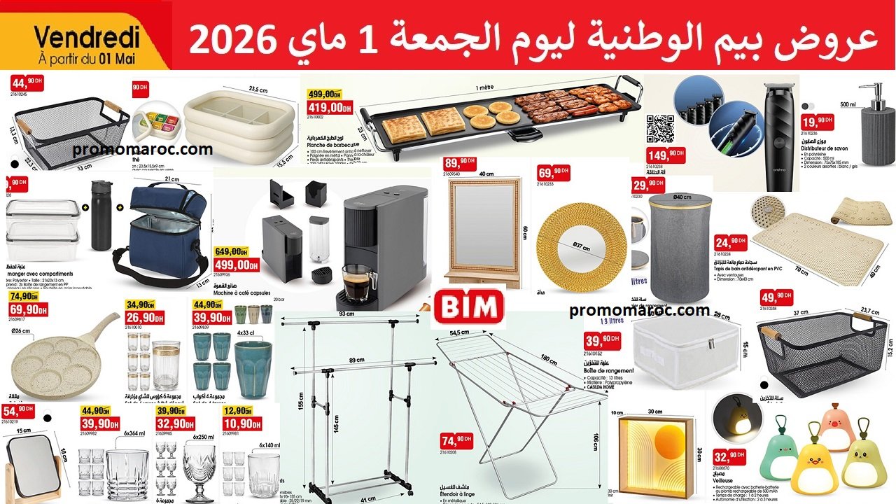 Découvrez les nouvelles promo et solde Bim vendredi 01 mai 2026. disponible dans tous vos magasins bim au Maroc.