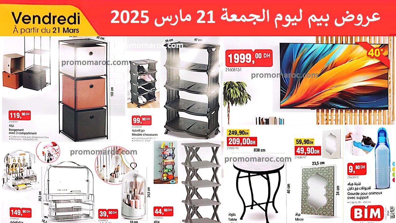Découvrez une sélection de produits chez les magasins de Bim au Maroc, Bim agadir / Bim Casablanca/ Bim Rabat/ Bim Marrakech/ Bim Fes / Bim Tanger À partir du vendredi 21 mars 2025.