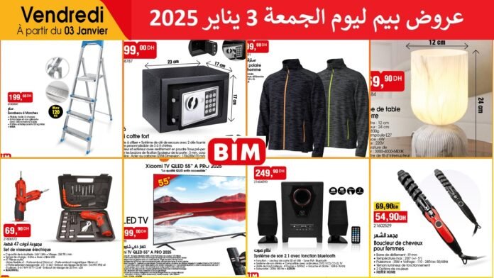 À partir du vendredi 3 janvier, ne manquez pas les offres incroyables chez bim stores maroc ! La télévision Xiaomi QLED 55 A PRO 2025, des vêtements tendance pour hommes, boucleur de cheveux pour femmes et bien plus encore ! C’est le moment de faire de bonnes affaires, uniquement chez Bim ! Toujours les bonnes affaires, toujours chez Bim !