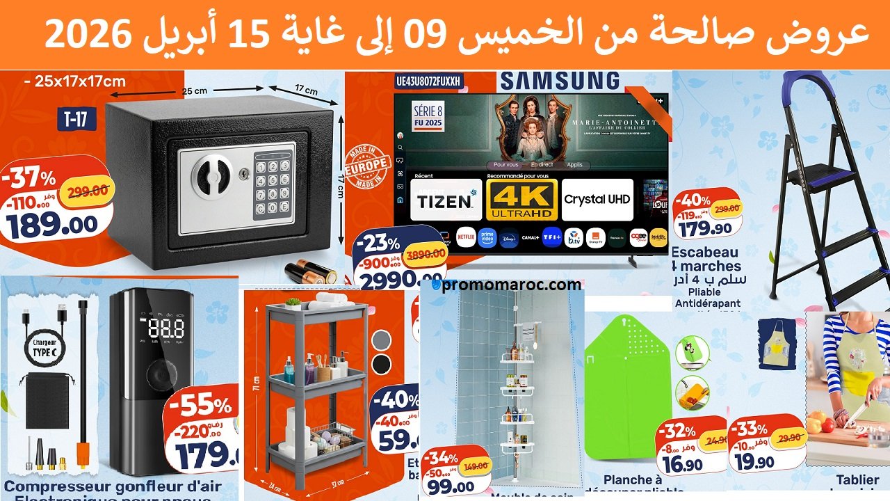 Découvrez les nouvelles promo et solde du catalogue Kazyon maroc du 09 au 15 avril 2026. disponible dans tous vos magasins Kazyon market au Maroc.