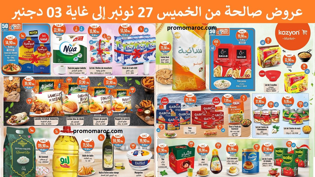 Découvrez les nouvelles promo et solde du catalogue Kazyon market du 27 novembre au 3 decembre 2025. disponible dans tous vos magasins Kazyon market au Maroc.