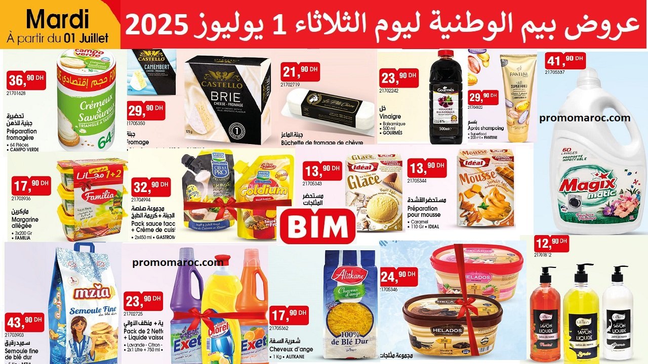 AccueilsupermarchéBimPromotion bim mardi 1 juillet 2025 divers produits29 juin 2025FacebookTwitterPinterestWhatsApp Promotion bim mardi 1 juillet 2025 divers produitsعروض بيم الوطنية ليوم الثلاثاء 1 يوليوز 2025Découvrez les nouvelles promotion et solde bim bim mardi 1 juillet 2025. disponible dans tous vos magasins bim au Maroc. Le catalogue bim 1 juillet 2025 met a votre disposition:TagsBIM MarocCatalogue Bimdépliant bimPromotion bimPartagerFacebookTwitterPinterestWhatsApp Articles Liés BimCatalogue Bim maroc 20 fevrier 2026 BimCatalogue Bim 20 fevrier 2026 BimCatalogue Bim vendredi 20 fevrier 2026Articles récents BimCatalogue Bim maroc 20 fevrier 2026 BimCatalogue Bim 20 fevrier 2026 BimCatalogue Bim vendredi 20 fevrier 2026 kazyonCatalogue Kazyon maroc du 19 au 25 fevrier 2026 AswakassalamCatalogue Aswak Assalam du 13 fevrier au 8 mars 2026Voir plus