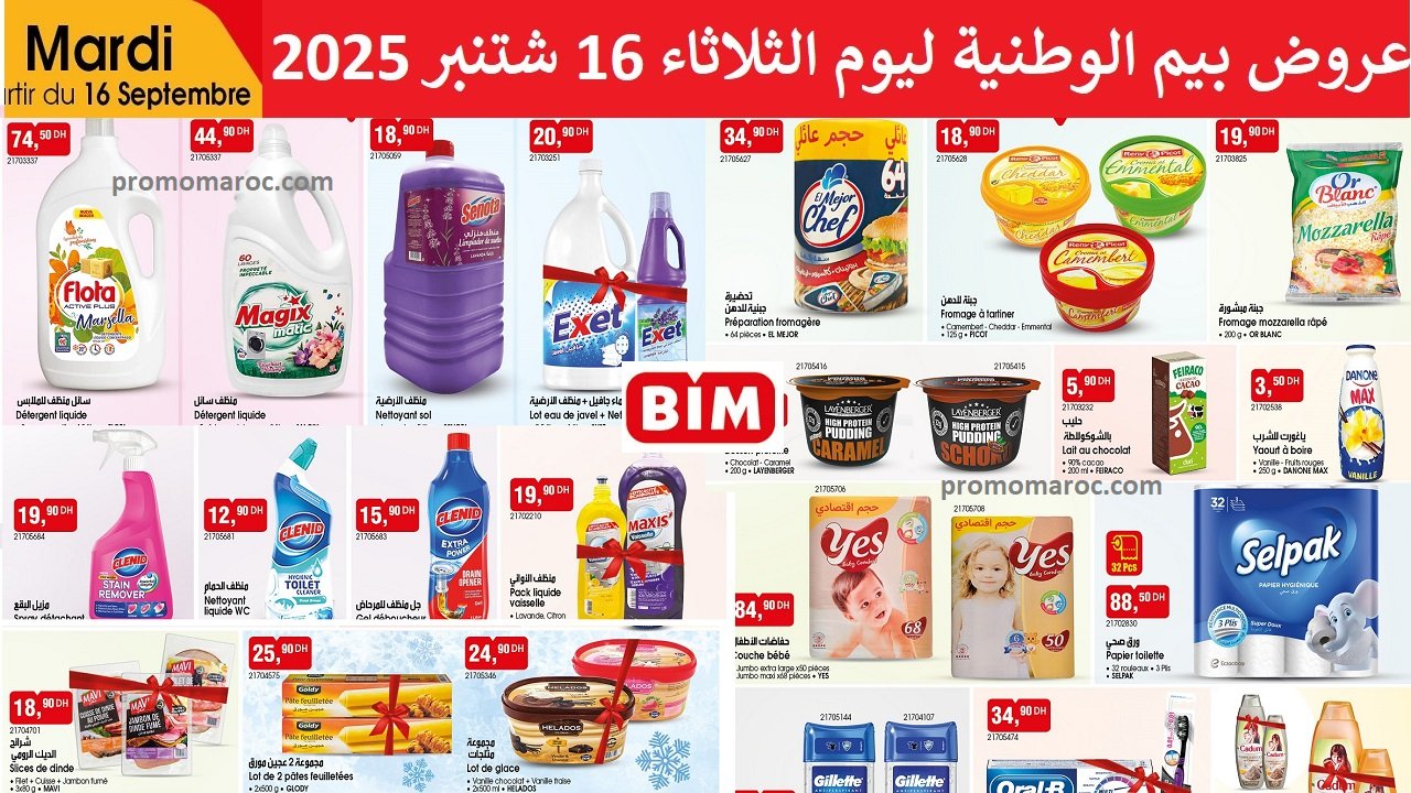 Découvrez les nouvelles promotion et solde bim mardi 16 Septembre 2025. disponible dans tous vos magasins bim au Maroc.