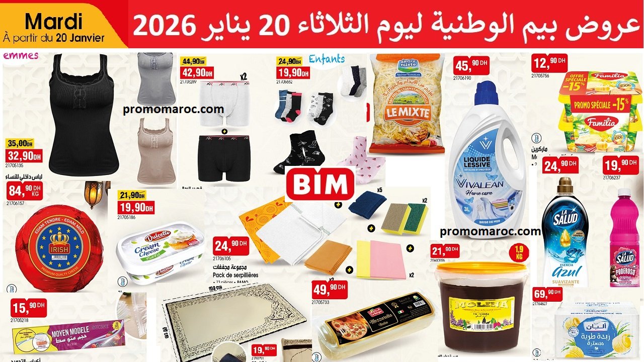Découvrez les nouvelles promotion et solde bim mardi 20 Janvier 2026. disponible dans tous vos magasins bim au Maroc.