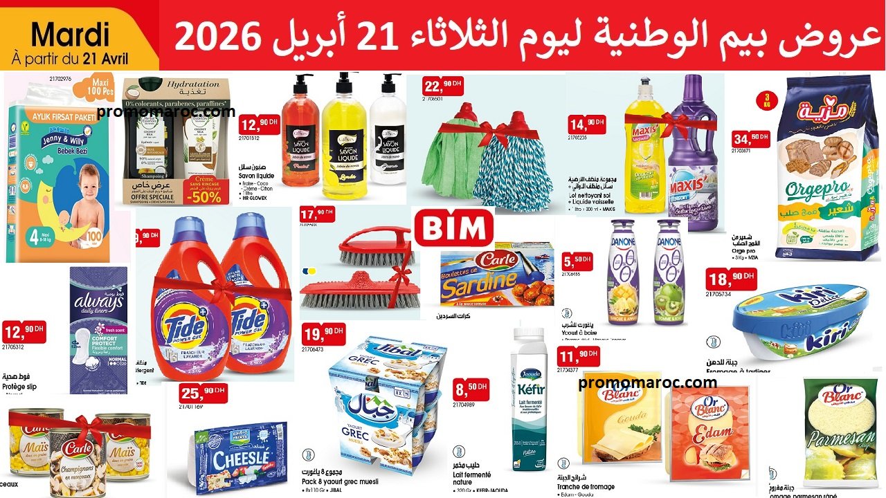AccueilsupermarchéBimPromotion Bim mardi 21 avril 202619 avril 2026FacebookXPinterestWhatsApp Promotion Bim mardi 21 avril 2026Découvrez les nouvelles promotion et solde Bim mardi 21 avril 2026. disponible dans tous vos magasins bim au Maroc. Le catalogue bim 21 avril 2026 met a votre disposition:TagsCatalogue BimPromotion bimعروض بيمPartagerFacebookXPinterestWhatsApp Articles Liés kazyonPromo Kazyon maroc du 20 au 22 avril 2026 BimPromotion Bim vendredi 24 avril 2026 offre printemps kazyonCatalogue Kazyon du 23 au 29 avril 2026Articles récents kazyonPromo Kazyon maroc du 20 au 22 avril 2026 BimPromotion Bim vendredi 24 avril 2026 offre printemps kazyonCatalogue Kazyon du 23 au 29 avril 2026 BimBim 24 avril 2026 produit de sport BimCatalogue Bim maroc 24 avril 2026Voir plus