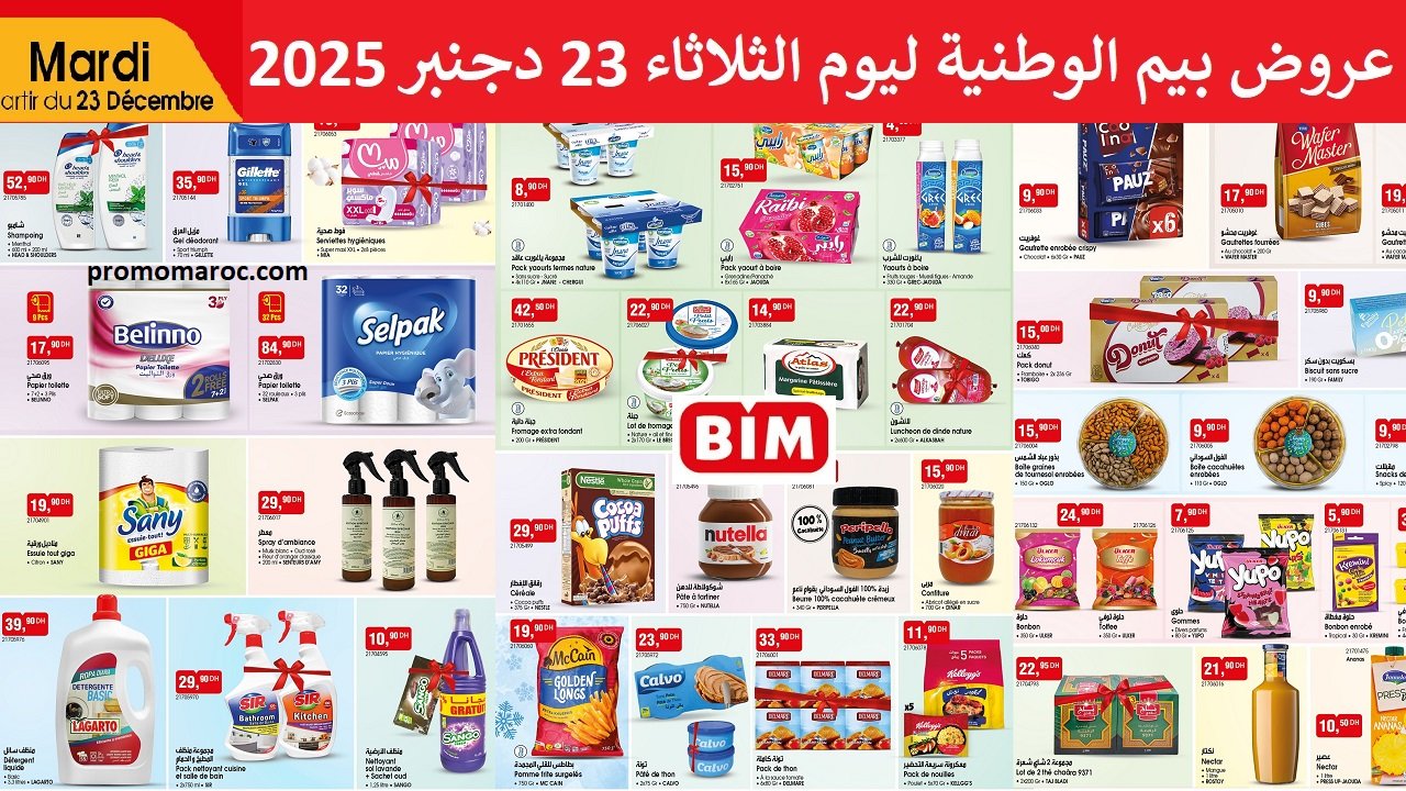 Découvrez les nouvelles promotion et solde du catalogue bim mardi 23 decembre 2025. disponible dans tous vos magasins bim au Maroc.