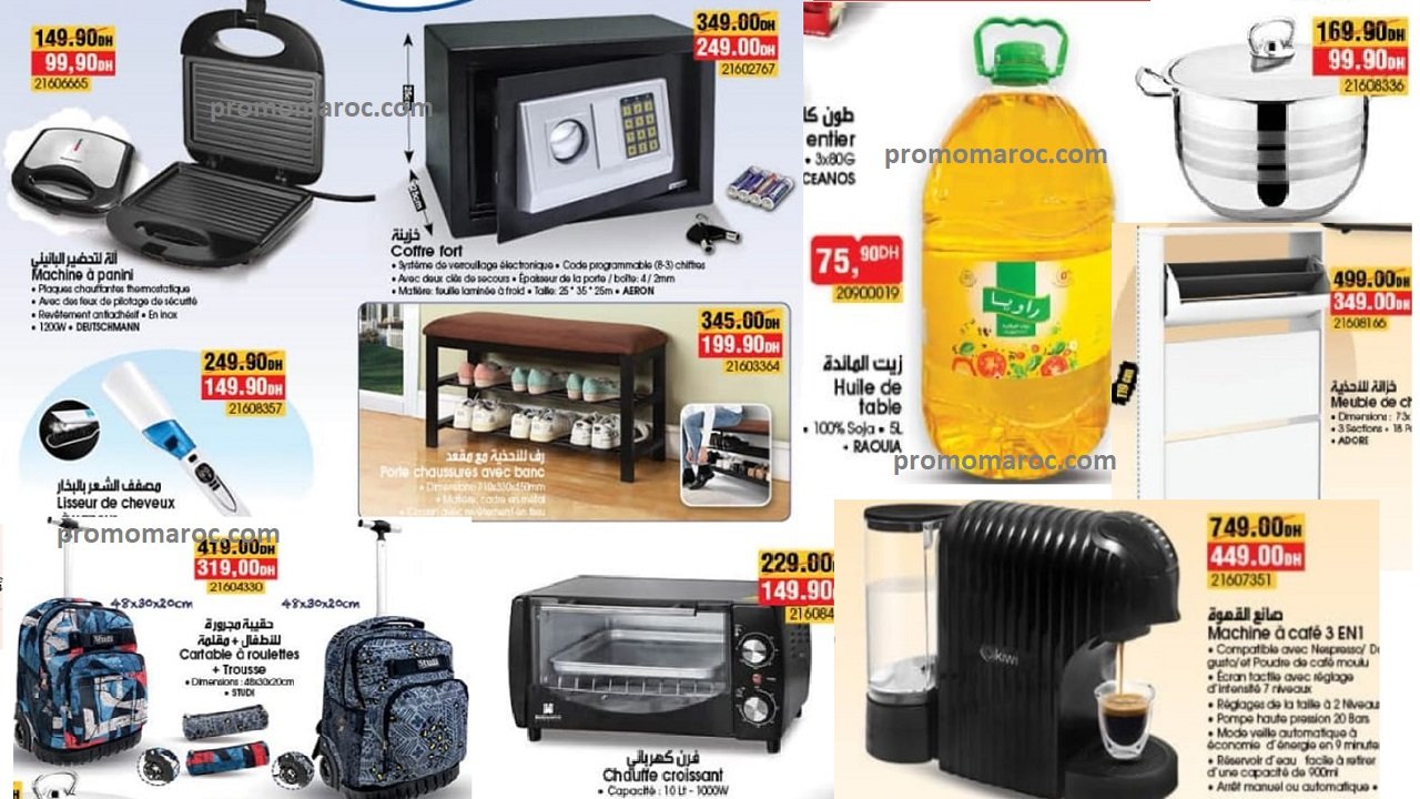 Salon pour jardin 1799dh. Meuble de chaussure 349dh. Machine à café 3en1 kiwi 449dh. Chauffe croissant 150dh. Cartable a roulette 319 dh. Port chaussure avec banc 199dh. Coffre fort 249dh. Lisseur de cheveux à vapeur 150 dh.