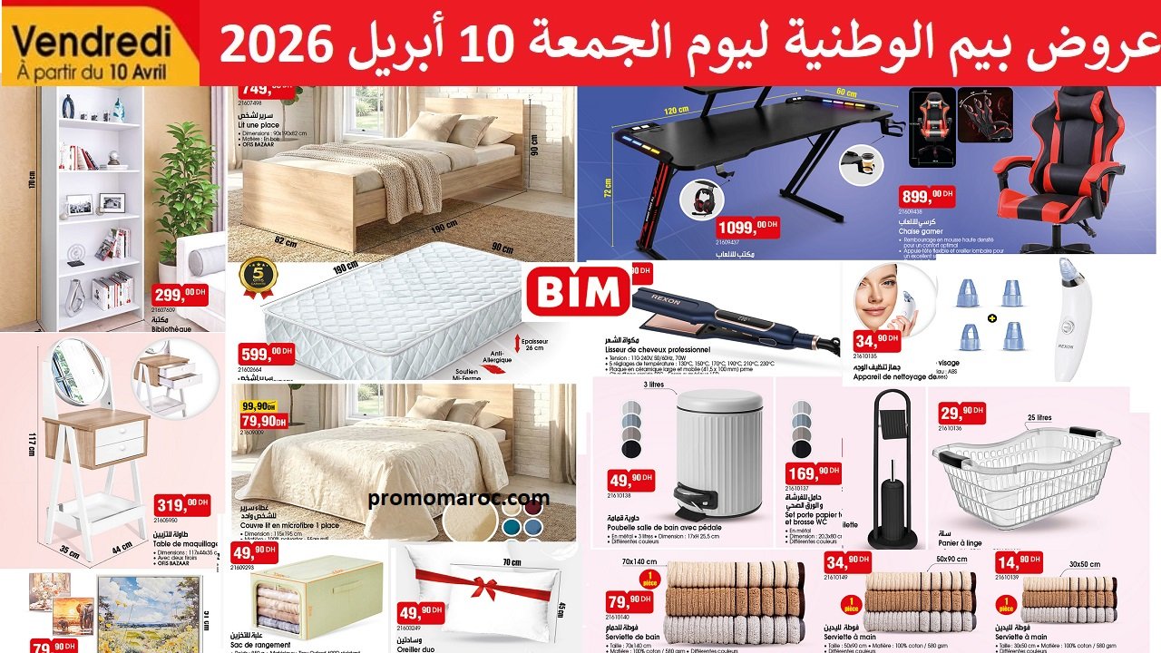 Découvrez les nouvelles promotion et solde du catalogue bim vendredi 10 avril 2026. disponible dans tous vos magasins bim au Maroc.