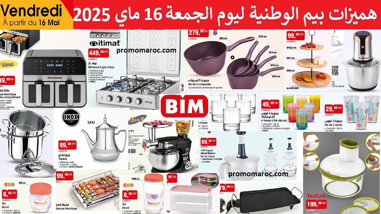 Découvrez les nouvelles promotions et soldes du catalogue bim vendredi 16 Mai 2025. disponible dans tous vos magasins bim au Maroc.