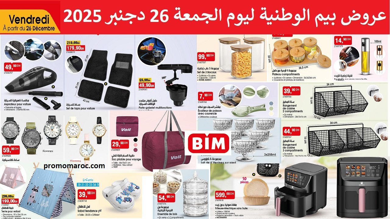 Découvrez les nouvelles promotion et solde bim vendredi 26 decembre 2025. disponible dans tous vos magasins bim au Maroc.