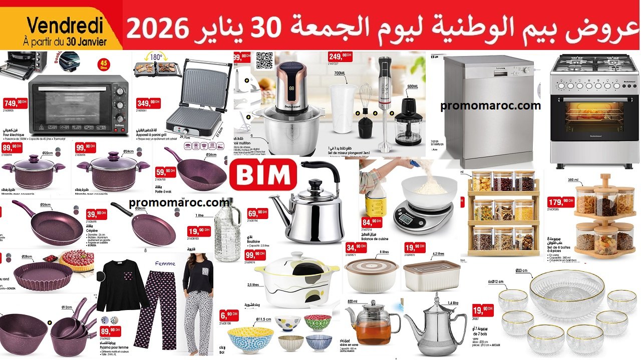 Découvrez les nouvelles promotion et solde bim vendredi 30 Janvier 2026. disponible dans tous vos magasins bim au Maroc.