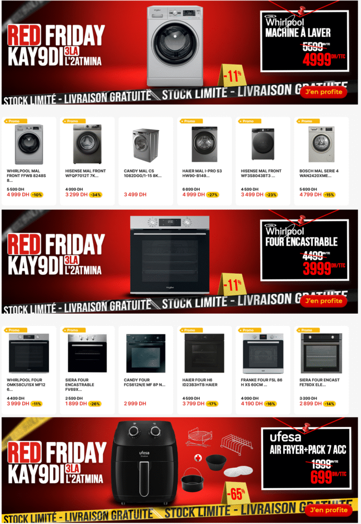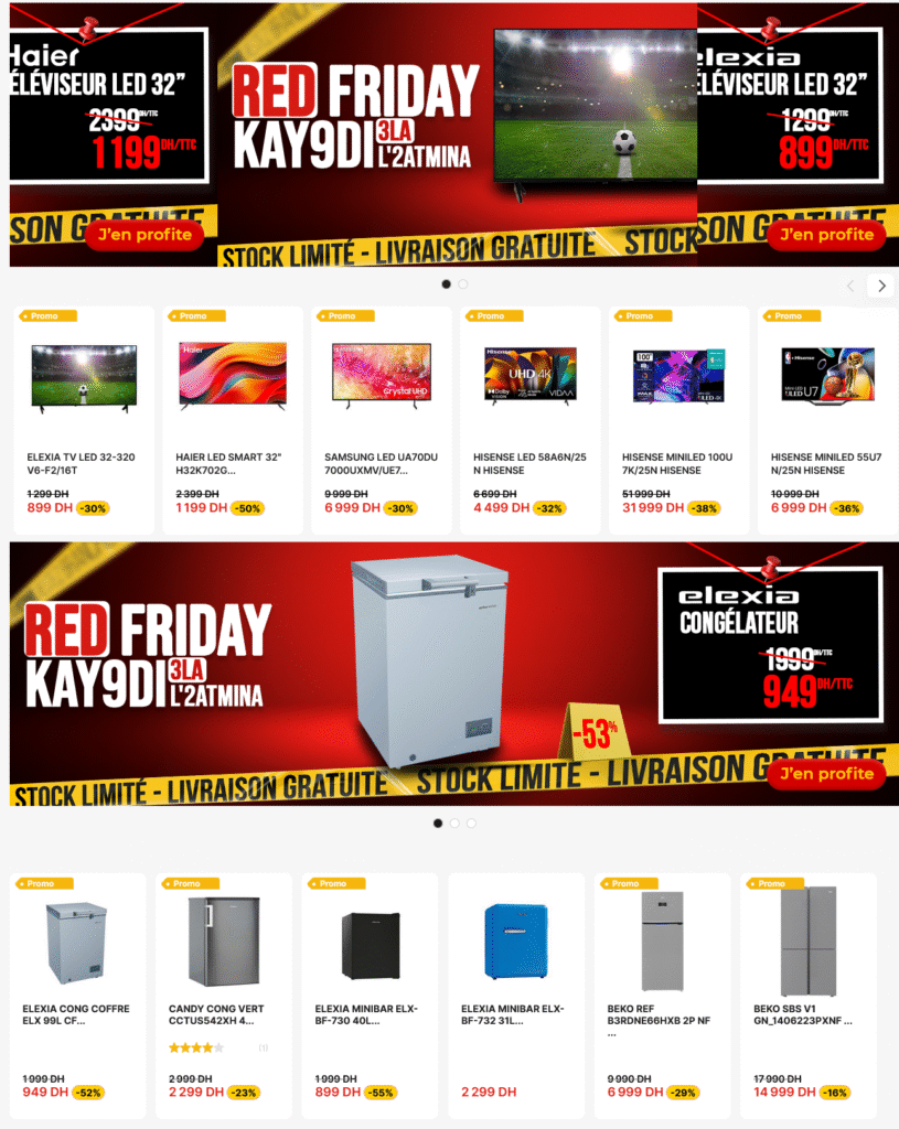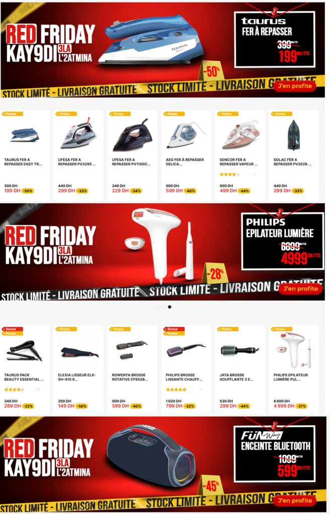Découvrez les nouvelles promotion et solde electroplanet RED Friday 2025. Et profiter les offres sur tous les magasins electroplanet au Maroc.