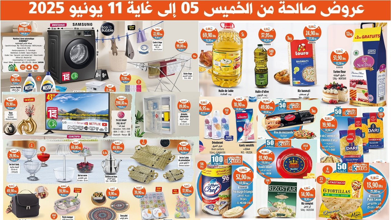 Découvrez les nouvelles promotion et solde Kazyon maroc du 5 au 11 Juin 2025 promo machine a laver. disponible dans tous vos magasins Kazyon market au Maroc.