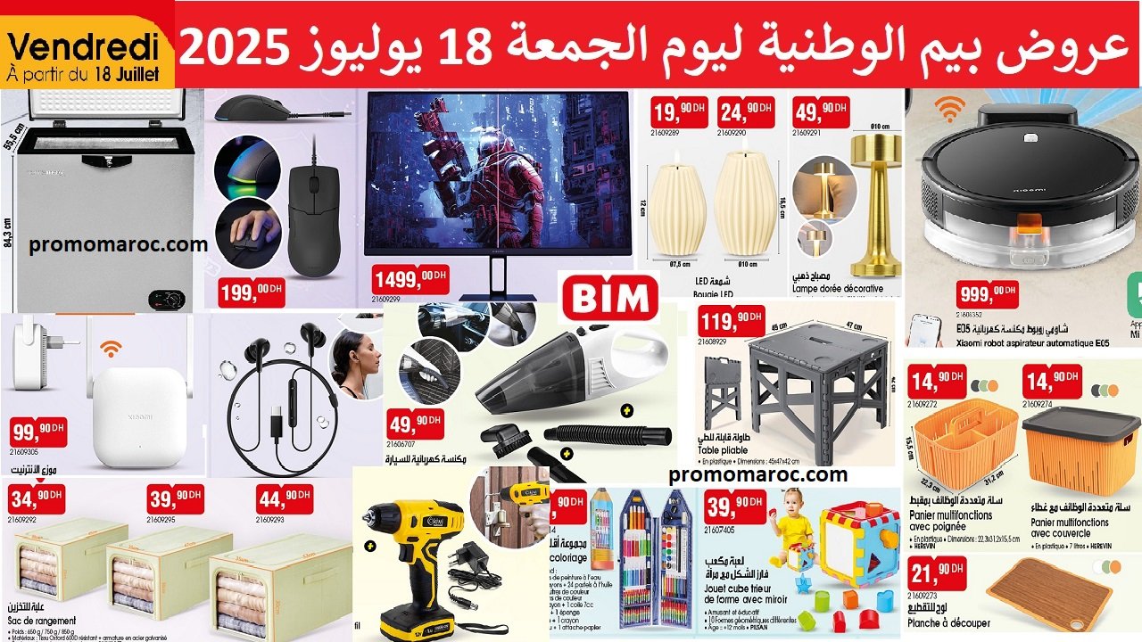 Découvrez les nouvelles promotions et soldes bim vendredi 18 Juillet 2025. disponible dans tous vos magasins bim au Maroc.