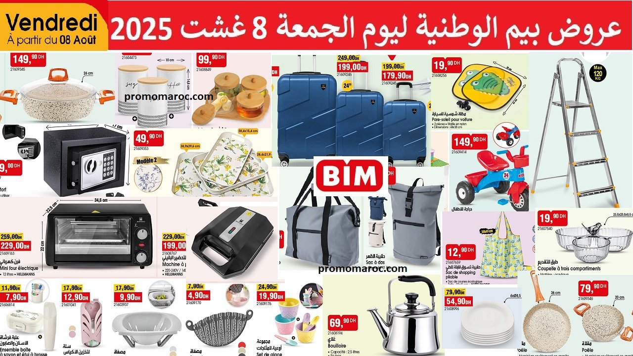 Découvrez les nouvelles promotions et soldes bim vendredi 8 Aout 2025. disponible dans tous vos magasins bim au Maroc.