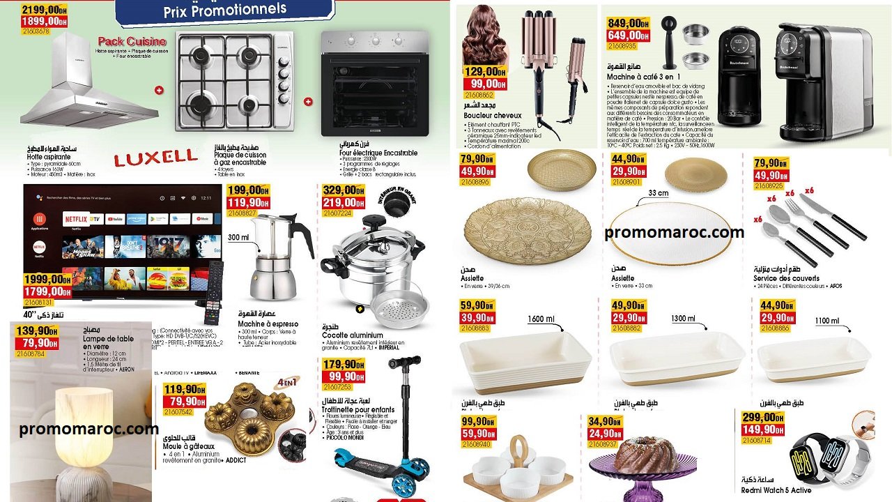- Pack de cuisine luxell plaque de cuisson a gaz encastrable plus four électrique encastrable et hotte aspirante prix 1899 dh au lieu de 2199 dh.
